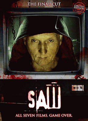 Two men wake up at opposite sides of a dirty, disused bathroom, chained by their ankles to pipes. Between them lies a dead man loosely clutching a hand-held tape player and a handgun. Each finds a tape the perfect fit for the player in their back pocket. They play the tapes. One is threatened, the other isn't. But they have a task: One must kill the other by 6:00, or his wife and daughter will die. They find hacksaws in a toilet, and try to cut the chains, but it doesn't work. They are the two newest victims of the Jigsaw Killer. In a flashback, we learn of Amanda, a girl who falls victim to the Jigsaw Killer. On her head is a mask, which is hooked into her lower jaw. There is a timer on it. Only one key will unlock it, and that key is in the digestive tract of her cell mate who lies paralyzed on the opposite side of the room. If she doesn't unlock the mask in time, her lower jaw will be ripped wide open...